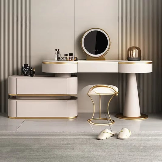 Aesthetic Storage Dresser Luxury Desing Led Light Mirror Kawaii Dressing Table White Aesthetic Comoda Pra Quarto Salon Furniture