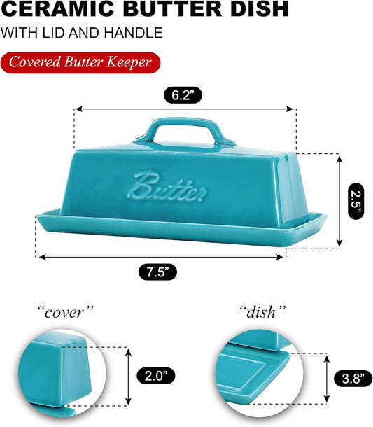 Bruntmor Porcelain Butter Keeper with Handle Cover, French Butter Dish Ceramic B